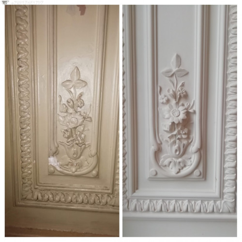 — аккуратно удаляем старые покрытия — краски (клеевые, водоэмульсионные, масляные), меловые и шпаклёвочные слои, а также следы предыдущих ремонтов, применяя современные и бережные методы очистки, которые сохраняют исходную фактуру изделия;